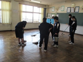 ワックス掛け(1・2年) 2026年3月23日 最終更新日時 : 2026年3月23日 kumagaya_edit 1・2年生の清掃美化委員が、普段使っている教室や特別教室のワックス掛けを行いました。来年使う人のことを考えながら、丁寧にかつ一生けん命ワックスをかけてくれ、とても床がきれいになりました。