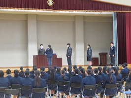 卒業式練習初日 2026年3月3日 最終更新日時 : 2026年3月3日 kumagaya_edit 今日から卒業式の練習がスタートしました。座り方、証書のもらい方等、真剣な表情で、やり方の説明を聞いていました。
