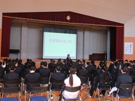 性教育(3年) 2026年3月5日 最終更新日時 : 2026年3月5日 kumagaya_edit 3年生を対象に、性教育の授業を行いました。講師は、深谷日赤の丸岡希美子様で「思春期の生と性」をテーマに講演いただきました。 義務教育を終え、新しいステージに立つ3年生にとって非常に役立つ内容で、充実した時間となりました。