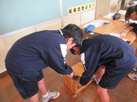 技術(木工) 2025年11月28日 最終更新日時 : 2025年11月28日 kumagaya_edit 11月28日(木)技術の時間に、1年生が木工に取り組みました。この日は、のこぎりで切る練習をするということで、長めの板に線を引き、上手にのこぎりで切っていました。