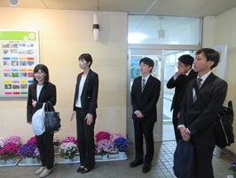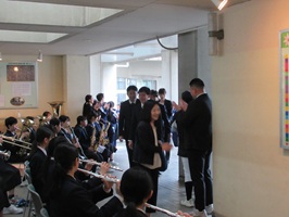 新任職員歓迎会 2026年4月6日 最終更新日時 : 2026年4月6日 kumagaya_edit 4月1日、令和8年度新たに着任した先生方を、部活動に来ていた生徒たちが出迎えました。吹奏楽部の生徒が校歌等を演奏し、他の生徒たちは拍手で出迎えました。温かい出迎えの雰囲気に、新しくいらした先生方も喜んでいました。