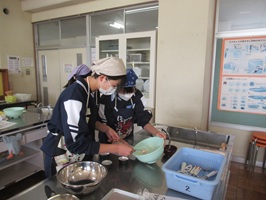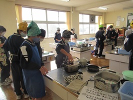 調理実習(1年) 2026年1月15日 最終更新日時 : 2026年1月15日 kumagaya_edit 1年生が調理実習で、ブルーベリーのカップケーキといももちを作りました。手際よくジャガイモをむいたり、粉を混ぜたり、協力しながら楽しそうに実習をしていました。