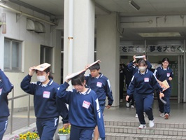 4月10日(金)第1回の避難訓練を行いました。1回目は、地震と火災を想定して実施しました。地震訓練では、静かに机の下にもぐることができました。また、その後の火災訓練では、早歩きで校庭に避難しました。教頭先生からは、本番を設定し、笑ったりしゃべったりせず、真剣に訓練に臨まなければならない。大切な放送や連絡を聞き逃して、仲間に迷惑がかかることがあるという話をしてもらいました。